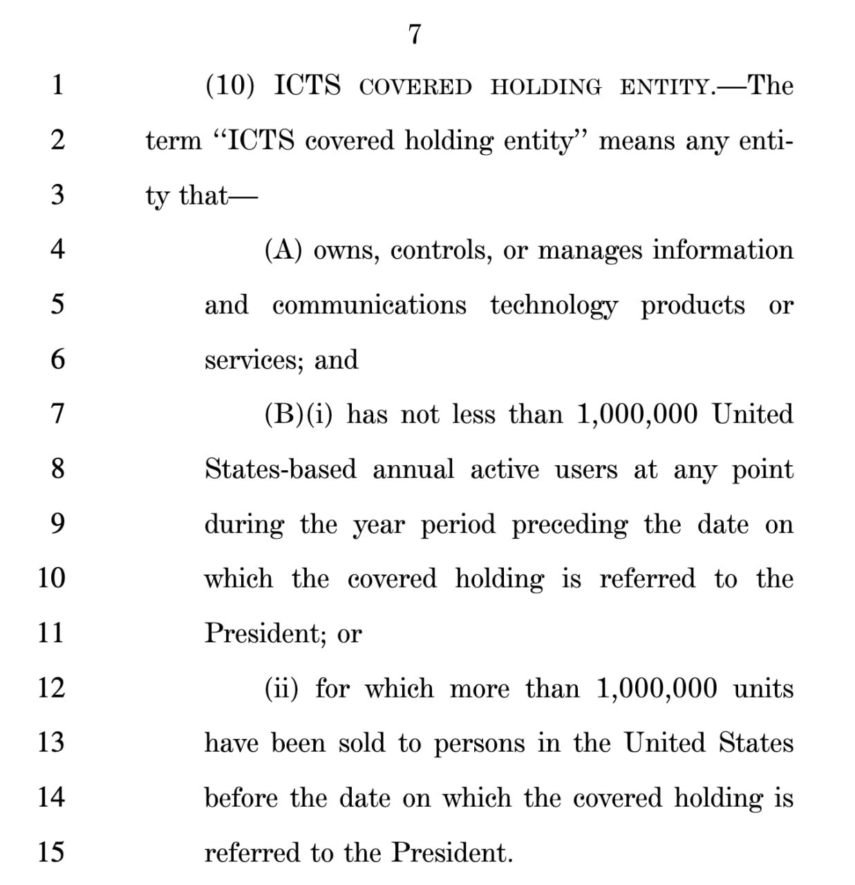 Ну так вот, люди копнули этот самый акт - полностью он называется The Restricting the Emergence of Security Threats that Risk Information and Communications Technology (RESTRICT) Act, сами понимаете, американцы любят складывающиеся в слова аббревиатуры, вот тут01 про него обзорно, там же внизу ссылки на полный текст.