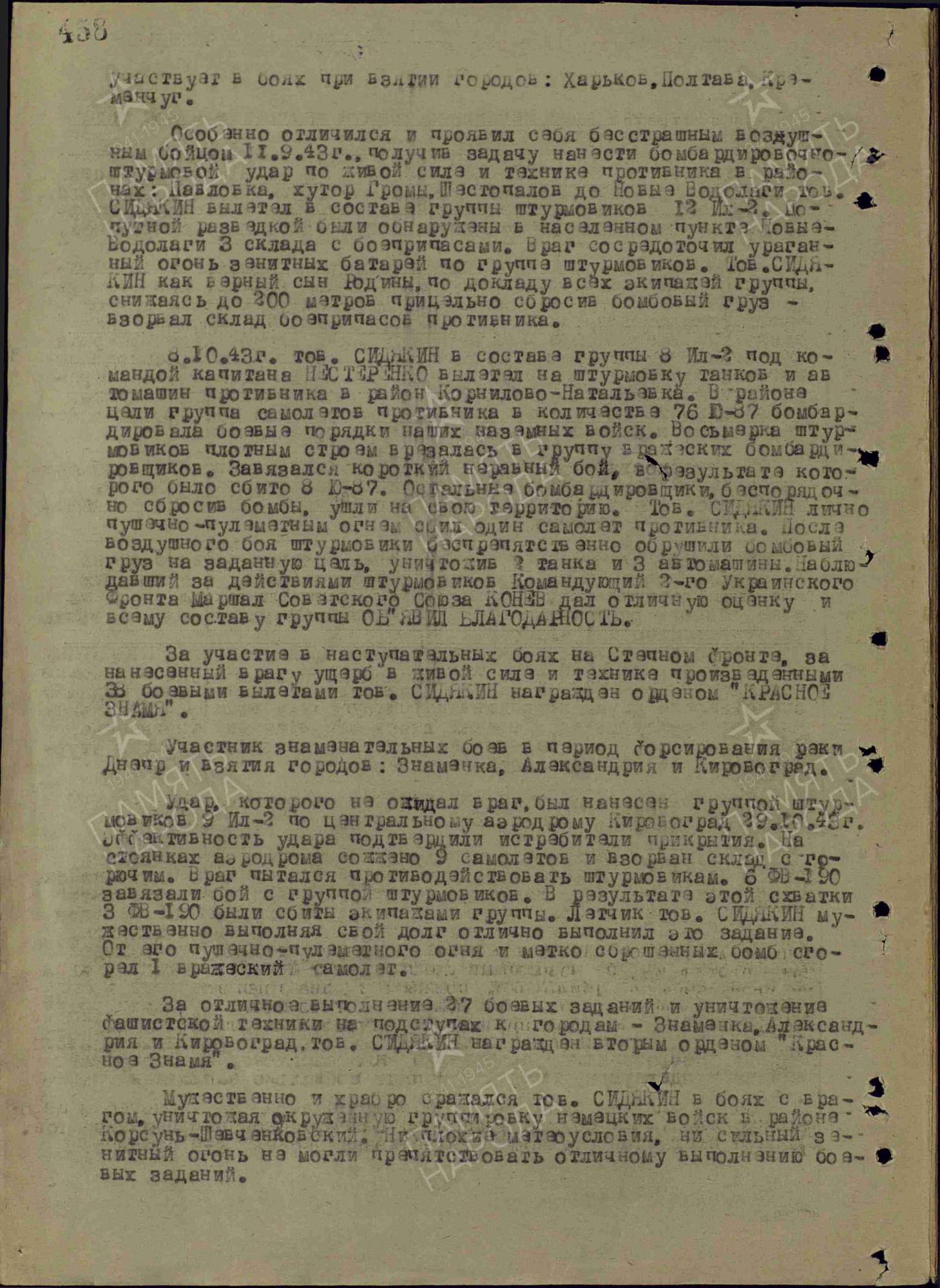 За 22 боевых задания, выполненных на «отлично», Василий Сидякин был награждён орденом Отечественной войны II-й степени.