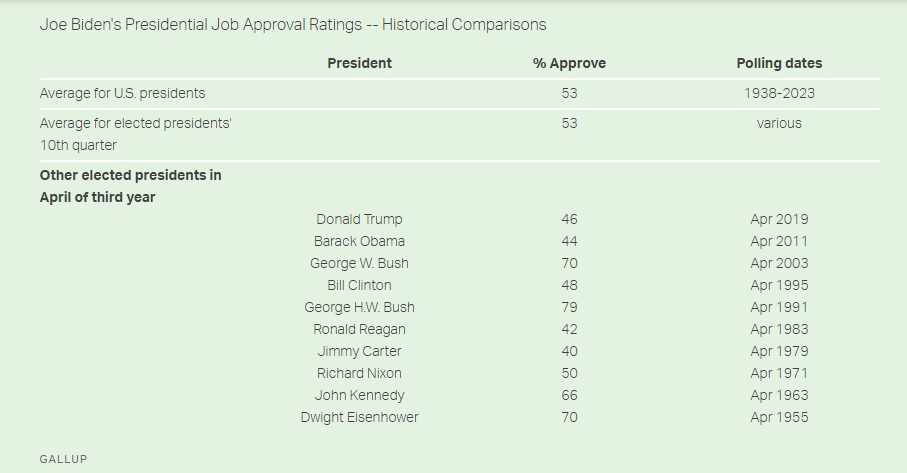 Но это-то ладно, Байден побил не только собственный антирекорд. Он побил антирекорд (для данного этапа президентства) вообще за всю историю данного соцопроса! А он проводится Gallup с середины 20 века!
