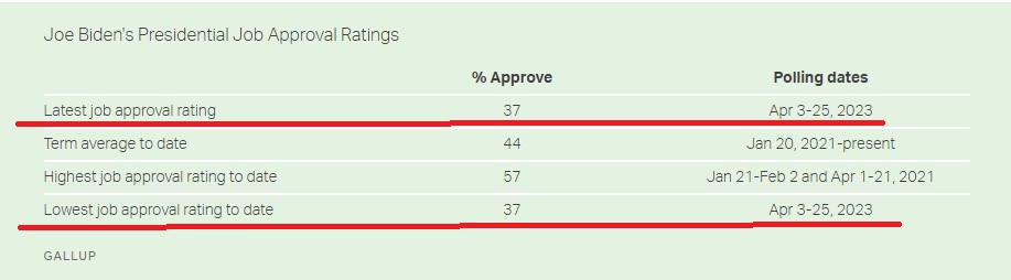 Крупнейшая социологическая контора США, Gallup, опубликовала свежие результаты опроса по уровню одобрения гражданами работы главы государства. Так вот, в апреле работу Байдена одобрили...37% опрошенных! Это не просто мало, это худший результат Байдена.