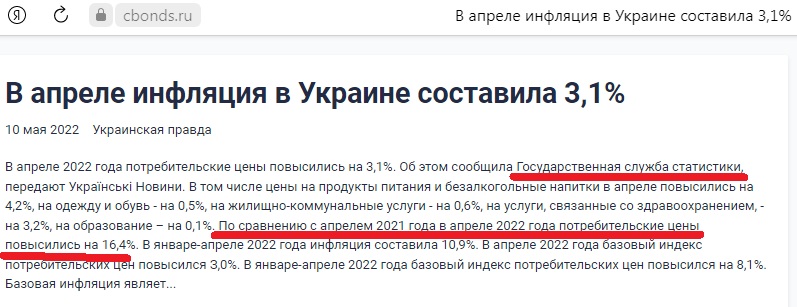 Да статистика на Украине и до СВО была вещью в себе. А что там сейчас с цифрами, при уходе большей части экономики в тень, трудно даже представить. Во всяком случае, рост цен на продукты питания, по оценкам знакомых, там живущих - существенно выше официальных цифр. Малый бизнес там успешно загибается: выгребли существенную часть работников (а кто-то прячется по домам), невозможно стало взять кредиты, беспредел налоговиков.