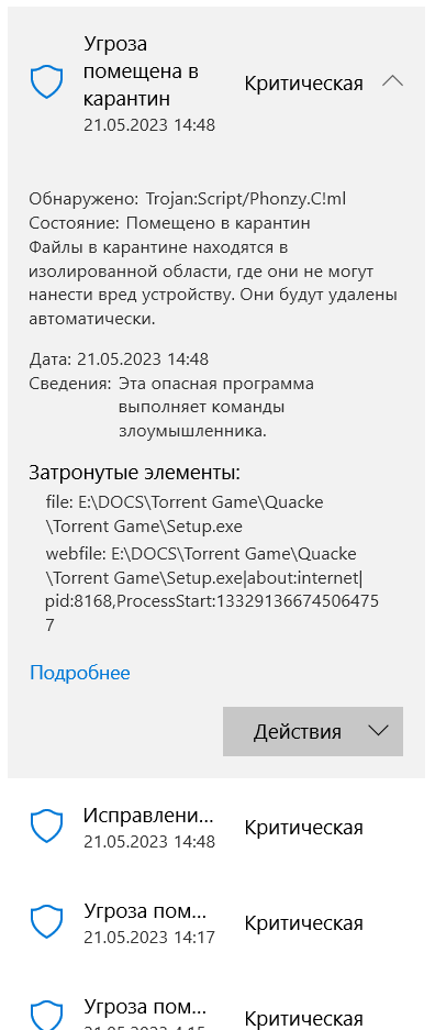 Майкрософт так борются с пиратскими играми и пиратским софтом... если автор репака игры проверенный то обычно папки с игрой добавляешь в игнор защитника... всё это под свою ответственность*