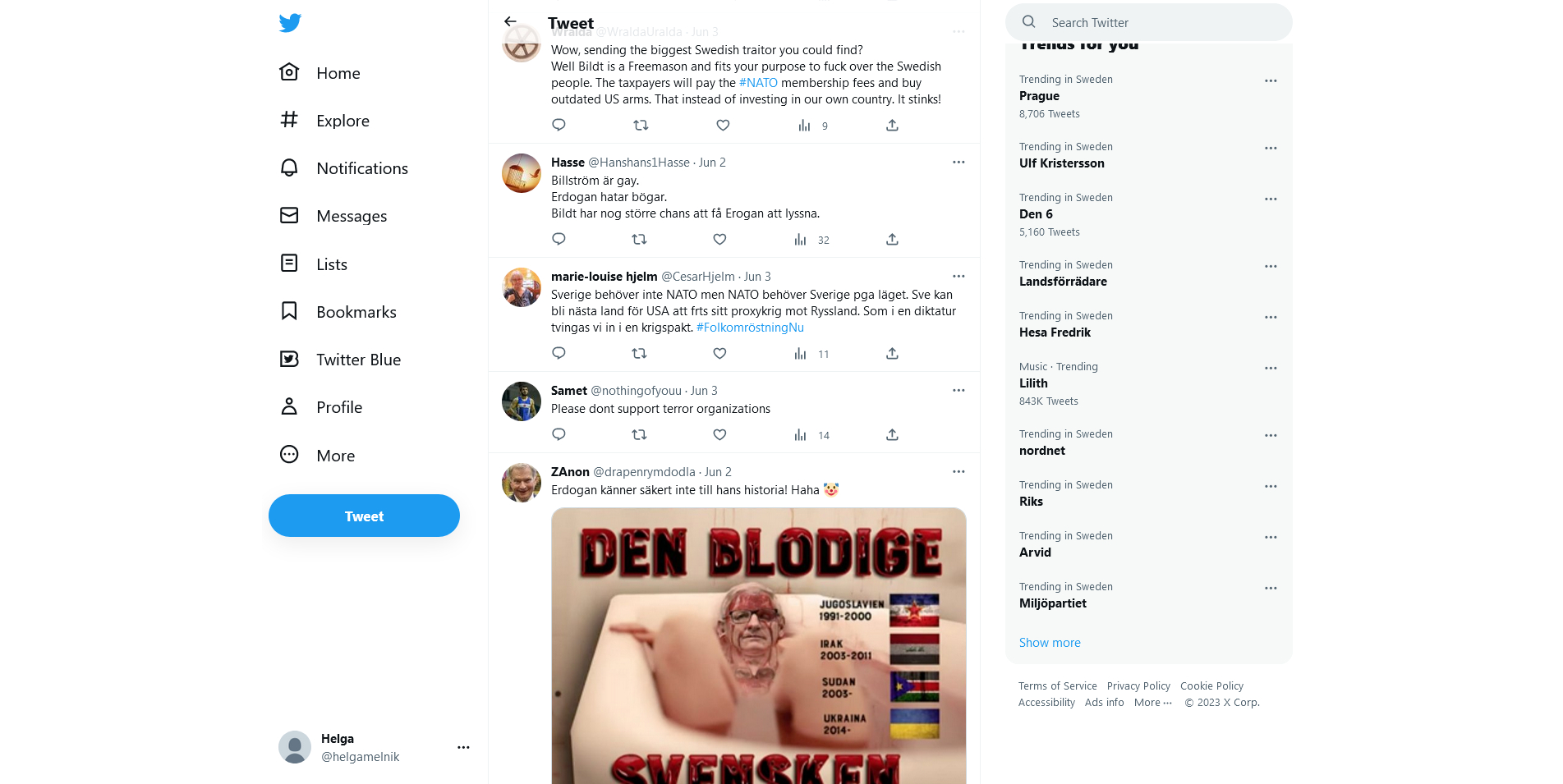 «Держитесь подальше от Турции и от НАТО. Эти двое будут рыть могилу для Швеции, как Украина – их доверенное лицо, которая уже обращается в прах вместо того, чтобы укреплять свои связи с Россией и Китаем. Будучи независимым, вы можете получить больше, чем став государством-клиентом США и НАТО»
