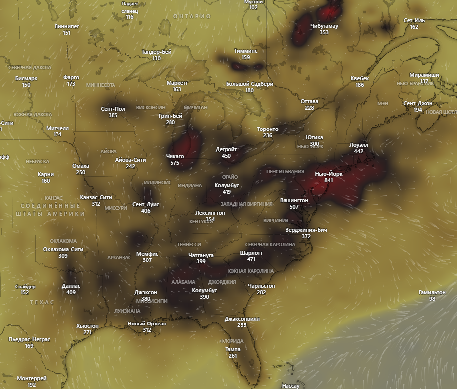 Из-за дыма от лесных пожаров в Канаде солнечные панели не поглощают солнечный свет, в результате чего производство солнечной энергии на северо-востоке Соёдиненных Штатов сократилось более чем на 50%.