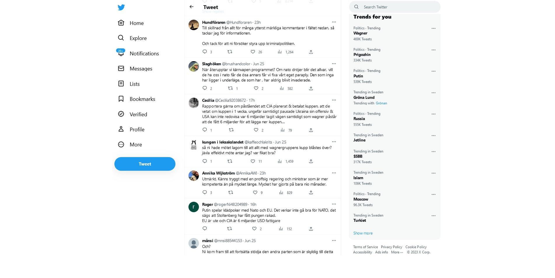 «Расскажите-ка лучше о заявлении, что ЦРУ спланировало и оплатило переворот, и что они знали о перевороте еще неделю назад, примерно тогда же пришлось приостановить контрнаступление Украины, а США не могут отчитаться, куда делись 6 миллиардов в то время, как Вагнер утверждает, что они получили 6 миллиардов».