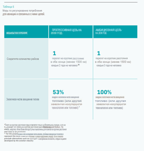 В докладе описываются шесть секторов, в которых города мира могут предпринять «быстрые действия для решения проблемы выбросов, основанных на потреблении»: продукты питания, строительство, одежда, транспортные средства, авиация и электроника.