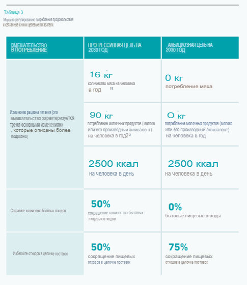 В докладе, опубликованном в 2019 году и повторно представленном в 2023 году, рекомендуется, чтобы к 2030 году не разрешалось употреблять в пищу мясные или молочные продукты, чтобы мы были ограничены тремя предметами новой одежды в год и одним полетом на самолете раз в три года. Это начнется в странах, которые «потребляют больше всех».