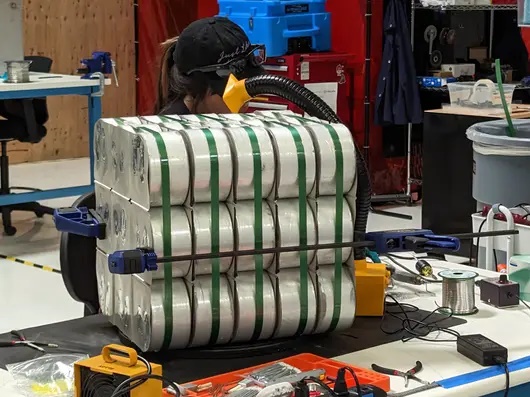 Рабочие строят батареи конденсаторов в Helion Energy. Реактору-прототипу стартапа потребуется достаточное количество конденсаторов для хранения 50 мегаджоулей энергии. ГЕЛИОН ЭНЕРДЖИ