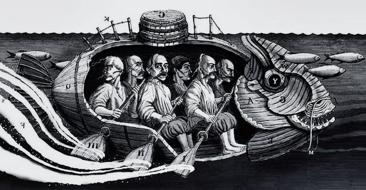 рыбы на картинке уже заранее, до срабатывания взрывателей глубинных бомб, всплыли вверх брюхом