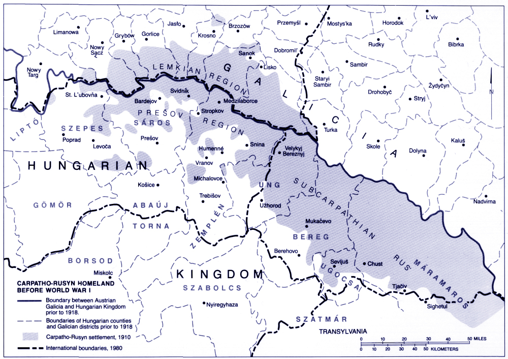 На карте территория, населяемая русинами