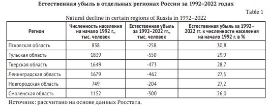 Депопуляция в регионах России: итоги за 1992-2022 гг. и компоненты