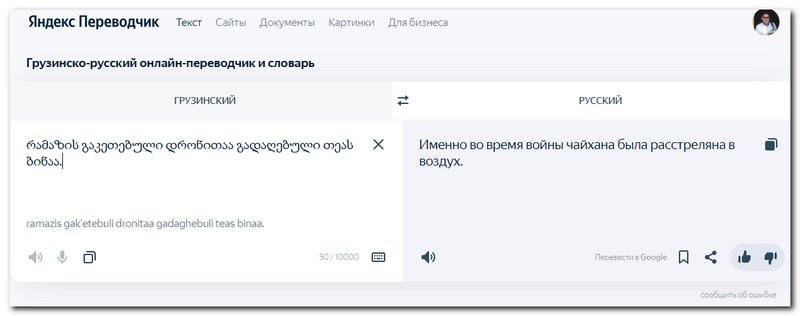 Яндех плохо переводит с Грузинского на Ваганьковское. С английского на русский весьма неплохо, но есть нюансы.