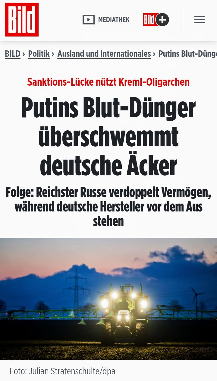 «Вся промышленность по производству удобрений в Германии работает с большими убытками. Если Германия не хочет финансировать Россию, и поэтому отказывается от российского газа, то возникает вопрос, почему импорт российского газа в виде мочевины и аммиака в Германию в последние месяцы смог вырасти?» — недоумевает в интервью BILD министр экономики и сельского хозяйства земли Саксония-Анхальт Свен Шульце.