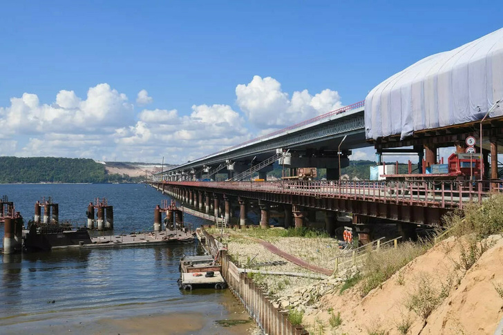 8 августа вблизи деревни Гребени Верхнеуслонского района завершена надвижка руслового пролётного строения моста через Волгу в составе автодороги М-12 «Восток».