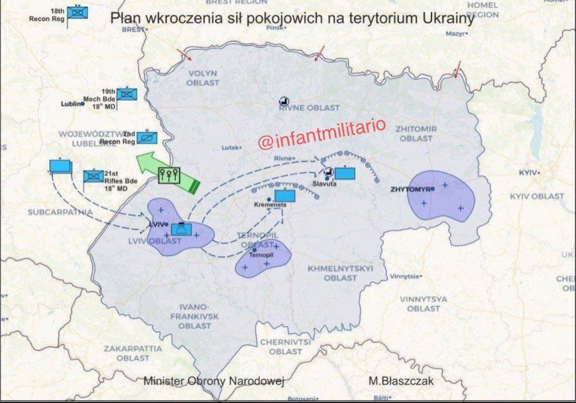 Нет уверенности, всё выше написанное всего лишь предположение. Украинцы освобождаются как ресурс для подкрепления на основной линии фронта, их место занимают поляки. а дальше по тексту: ... "и если эта территория станет мишенью России, Польша также планирует вступить в войну."