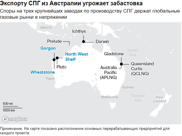 Базовые голландские фьючерсы выросли на 11% до 36,20 евро за мегаватт-час. Забастовка охватывает заводы по производству сжиженного природного газа Gorgon и Wheatstone, которые в прошлом году поставляли примерно 7% мирового производства СПГ.