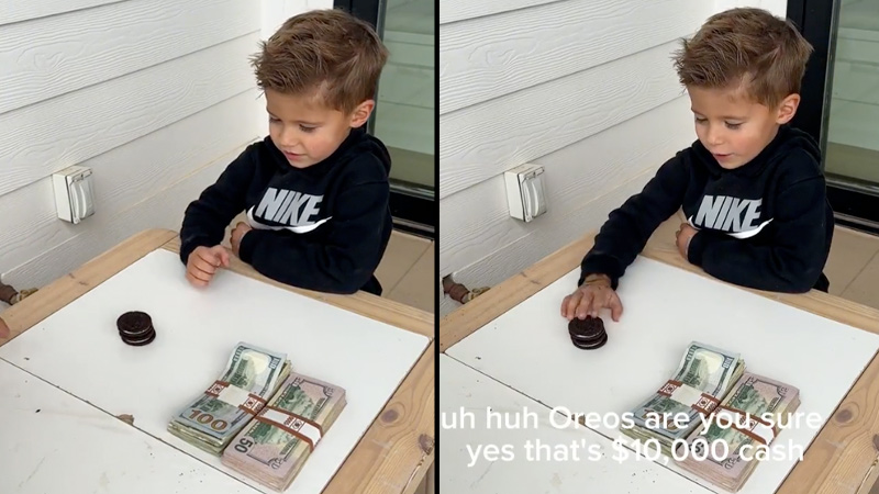 В видеоролике, набравшем более 25 миллионов просмотров, ребенку предлагается выбрать между двумя печеньями Oreo или 10 000 долларов наличными.
