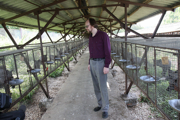 От центрального входа на ферму до клеток лисиц мы шли минут пять. Первая линия животных на нашем пути — агрессивные. Чтобы долго находиться с ними рядом, нужны железные нервы и... беруши. В глазах у каждой — страх, на каждой морде — пугающий оскал. А ведь их здесь только кормят и убирают за ними, подумалось мне. Никто нарочно их не пугает, не обижает и не дрессирует, как бойцовых собак. Все это — только результат генетического отбора.