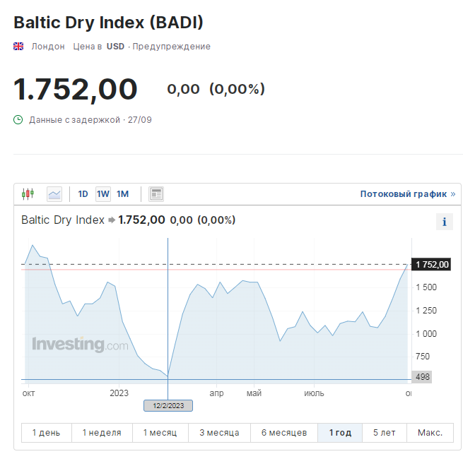 Это индекс Балтийской биржи по контрактам по перевозке любого сухого груза на двадцати основных морских торговых маршрутах, а не по Балтийскому морю.)