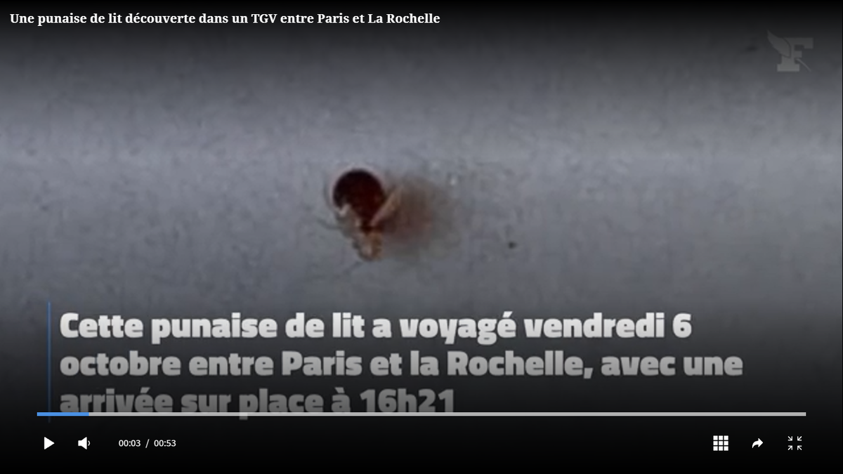 Телетекст: "Этот клоп в пятницу 6 октября совершил путешествие из Парижа в Ла-Рошель, время прибытия в пункт назначения 16 ч.21. (Газета "Фигаро")