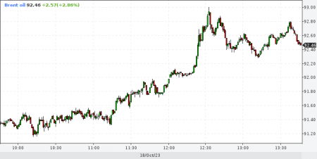 Нефть Brent продолжила рост, поднявшись на 3,5% после комментариев. По состоянию на 10:37 утра в Лондоне она торговалась на 3,1% выше, на уровне $92,67 за баррель .
