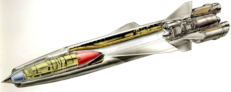 Вначале там идёт ВВ, толкающее плутониевый стержень в плутониевый цилиндр, облучается корпус из Урана-238, который становится Ураном-235, и ёмкости с Тритием и Дейтерием, которые и дают основную энергию.