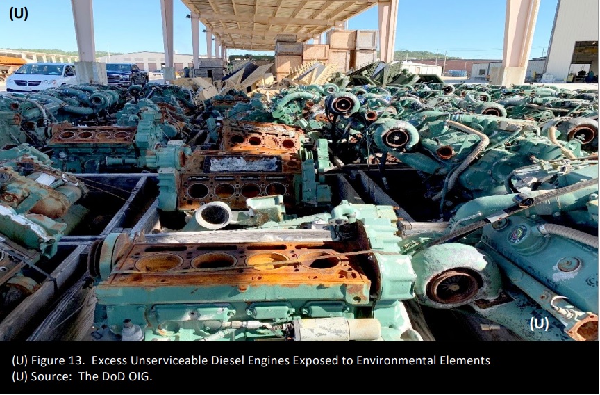 Использование соответствующих контейнеров и защитного оборудования от непогоды могло бы сэкономить миллионы. Следователи указали на случай, произошедший в 2021 году, когда армия потратила 10,92 миллиона долларов на ремонт двигателей, которые хранились неправильно.