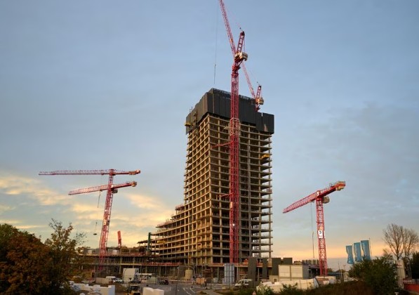 ФРАНКФУРТ, 3 ноября (Рейтер) - Строительство одного из самых высоких зданий Германии внезапно остановилось на полпути после того, как застройщик перестал платить своему строителю, что является еще одним зловещим знаком для проблемного сектора недвижимости страны.