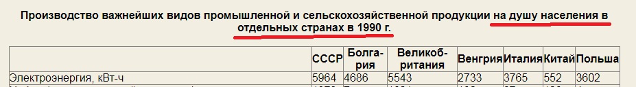 Сборник ЦСУ СССР "Народное хозяйство СССР в 1990 (том самом) году". Раздел международные сравнения. Таблица сравнений душевого производства основных товарных позиций. Где на первом месте обоснованно электроэнергия.