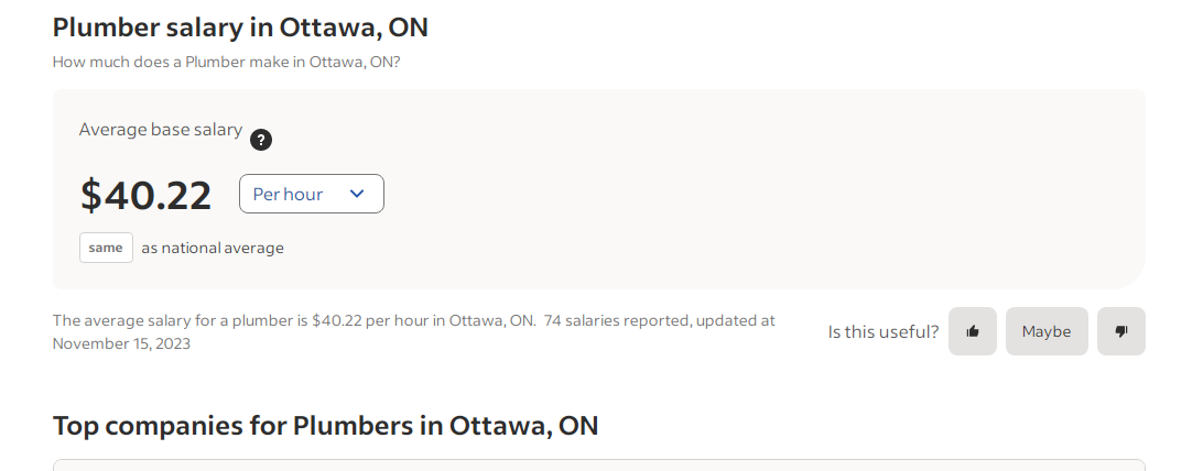 Вот вакансия сантехника, Онтарио, Оттава 40 $ в час