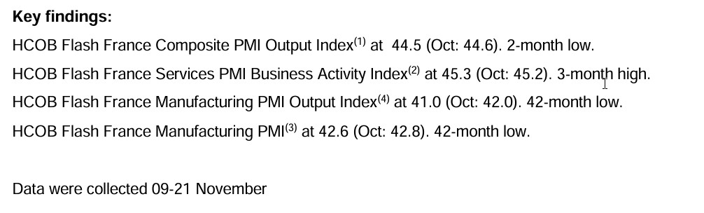 Экономика Франции зафиксировала еще одно резкое снижение деловой активности в середине четвертого квартала, как показали последние данные HCOB PMI®, что продлевает текущий период непрерывного спада, наблюдаемого с июня.