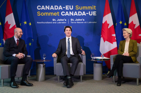 Премьер-министр Джастин Трюдо принял председателя Европейской комиссии Урсулу фон дер Ляйен и президента Европейского совета Шарля Мишеля на саммите в самом восточном городе Канады - Сент-Джонсе.