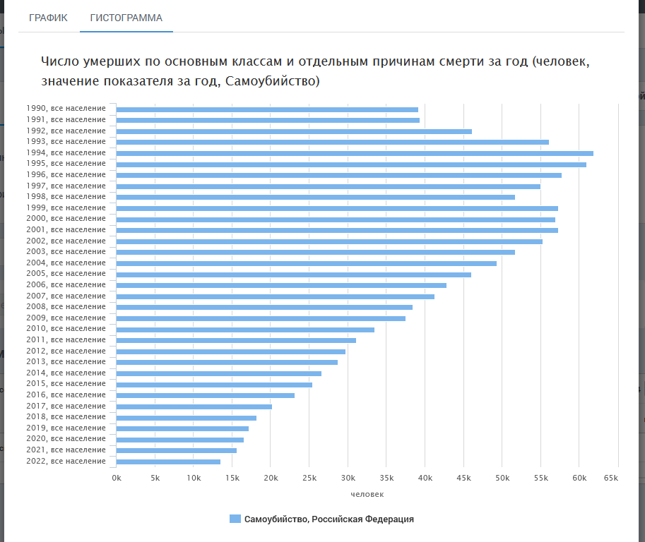 Под сегодняшней заметкой Genby о том, что в РФ в 2022 смертность от самоубийств составила 9,2 на 100000 человек и что РФ здесь и близко не в лидерах (а в 9-м десятке).