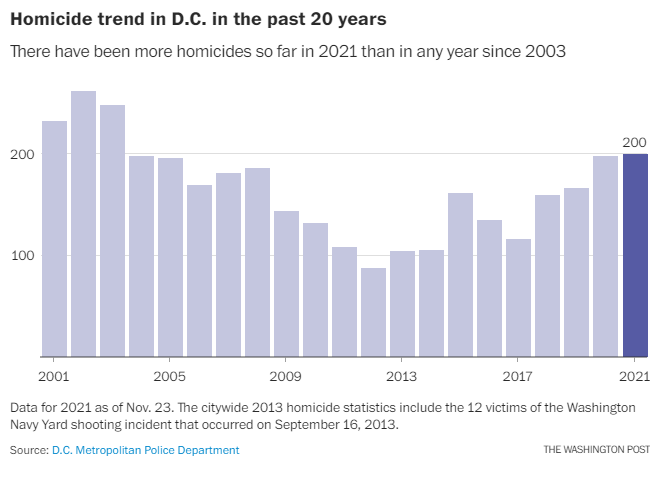 В Вашингтоне в 2021 было 200 убийств. Разница менее чем в 1,5 раза.