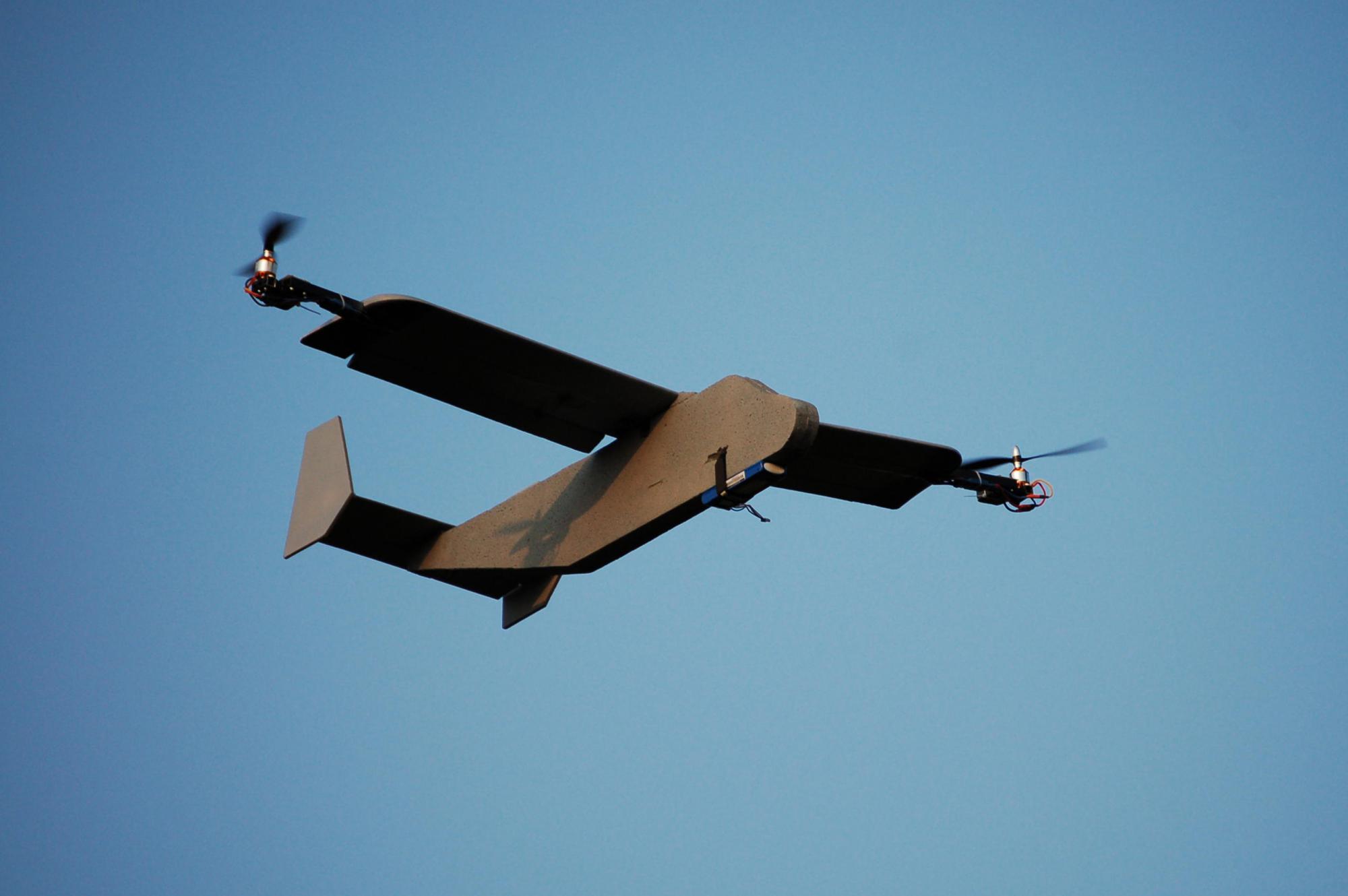 Но в "нашем" диапазоне весов такая конструкция оправдана. Разумеется, такая система не очень маневренна на скорости. Но для наблюдательного БПЛА этого и не требуется. Зато она взлетает и садится вертикально, при этом её автономность в разы больше, чем у квадрика схожей мощности.