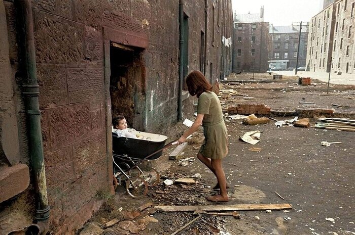 Это была известная серия фоток нищей Великобритании начала 1970-х фотографа Ника Хеджеса. Там всё такое
