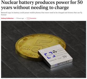 ☢Пекинская компания BetaVolt New Energy Technology Co., Ltd. объявила о разработке миниатюрной атомной батареи, использующей технологию распада ядерных изотопов Nickel 63 и алмазный полупроводник, что позволило обеспечить миниатюризацию, модульность и низкую стоимость