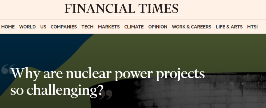 1 февраля Financial Times: Атомная энергетика снова в моде. Правительственные цели по достижению чистого нуля, а также стремление к большей энергетической безопасности, после начала операции России на Украине, привели к всплеску новых проектов по всему миру в последние годы.