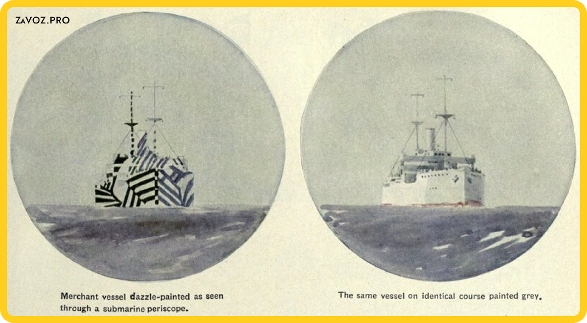 "...Во время Первой Мировой войны немецкие подводные лодки успешно громили американские и французские корабли, а все попытки замаскировать суда - терпели фиаско. Подлодки в то время были новым веянием войны. Как в современном 2023-ем никто не был готов к войне дронов и беспилотников, так и тогда большинство толком не понимало как противостоять субмаринам.