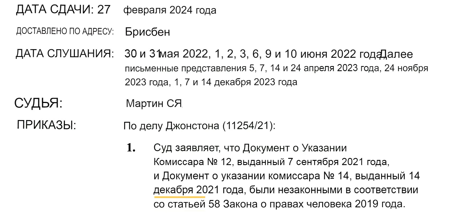 «Я хочу, чтобы жители Квинсленда знали, что его честь пришёл к выводу, что ограничение прав человека в отношении обязательной ковид-вакцинации не противоречит правам человека и, по сути, оно было оправдано, учитывая, что мы находимся в эпицентре пандемии».