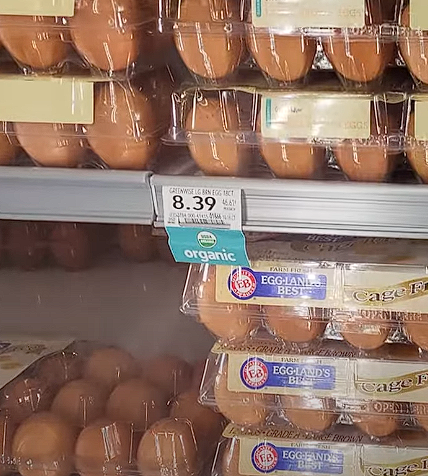 На ценнике пометка "Organic". Это не яйца с птицефабрики.