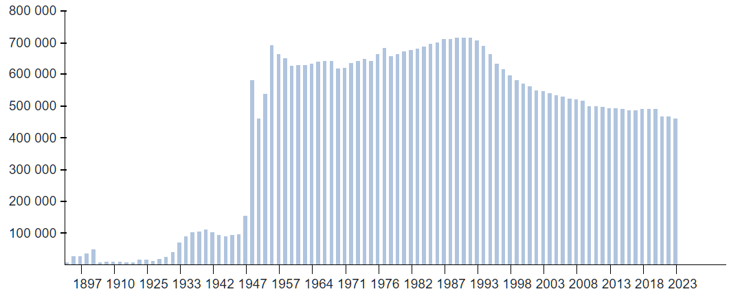 А при советах население выросло с 7200 человек в 1917 году, до 715333 в 1991 году.