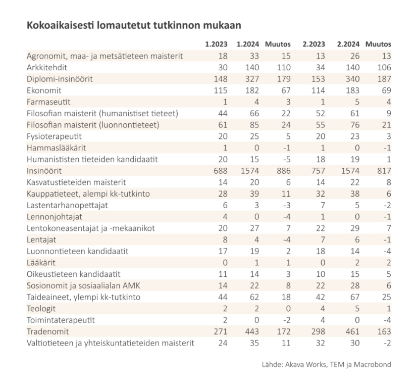 Уровень безработицы среди высокообразованных людей приближается к максимальной отметке времен пандемии короны и при нынешних темпах достигнет ее уже в апреле, говорится в новом исследовании Акавы (Центральный профсоюз работников с высшим образованием) о безработице и увольнениях.