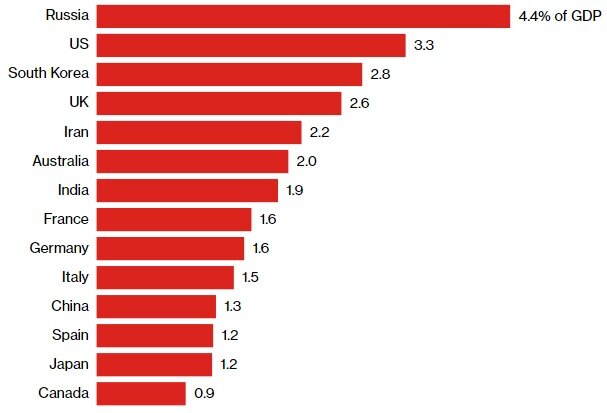 В США администрация президента Джо Байдена попросит увеличить на 1 % военный бюджет, который и так уже превосходит военный бюджет любой другой страны, а Мэтью Кройниг из Атлантического совета говорит, что в процентном отношении к ВВП его нужно удвоить. «США еще не достигли того уровня, на котором они должны быть», — сказал он.