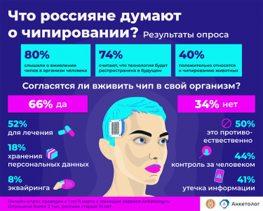 По мнению 74% россиян, технология чипирования будет распространена в будущем.