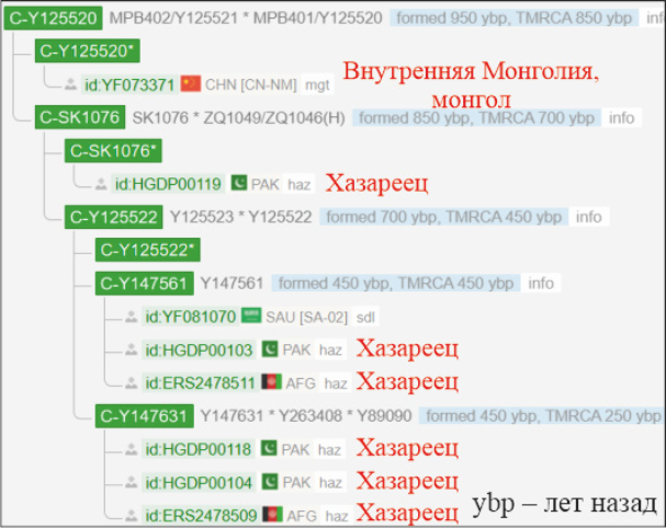 Рис. 2 – Гаплогруппа Y-хромосомы С (Дерево). Фрагмент субклада C-M48 «Монголы-ойраты». Линия Y125520 «Хазарейцы»
