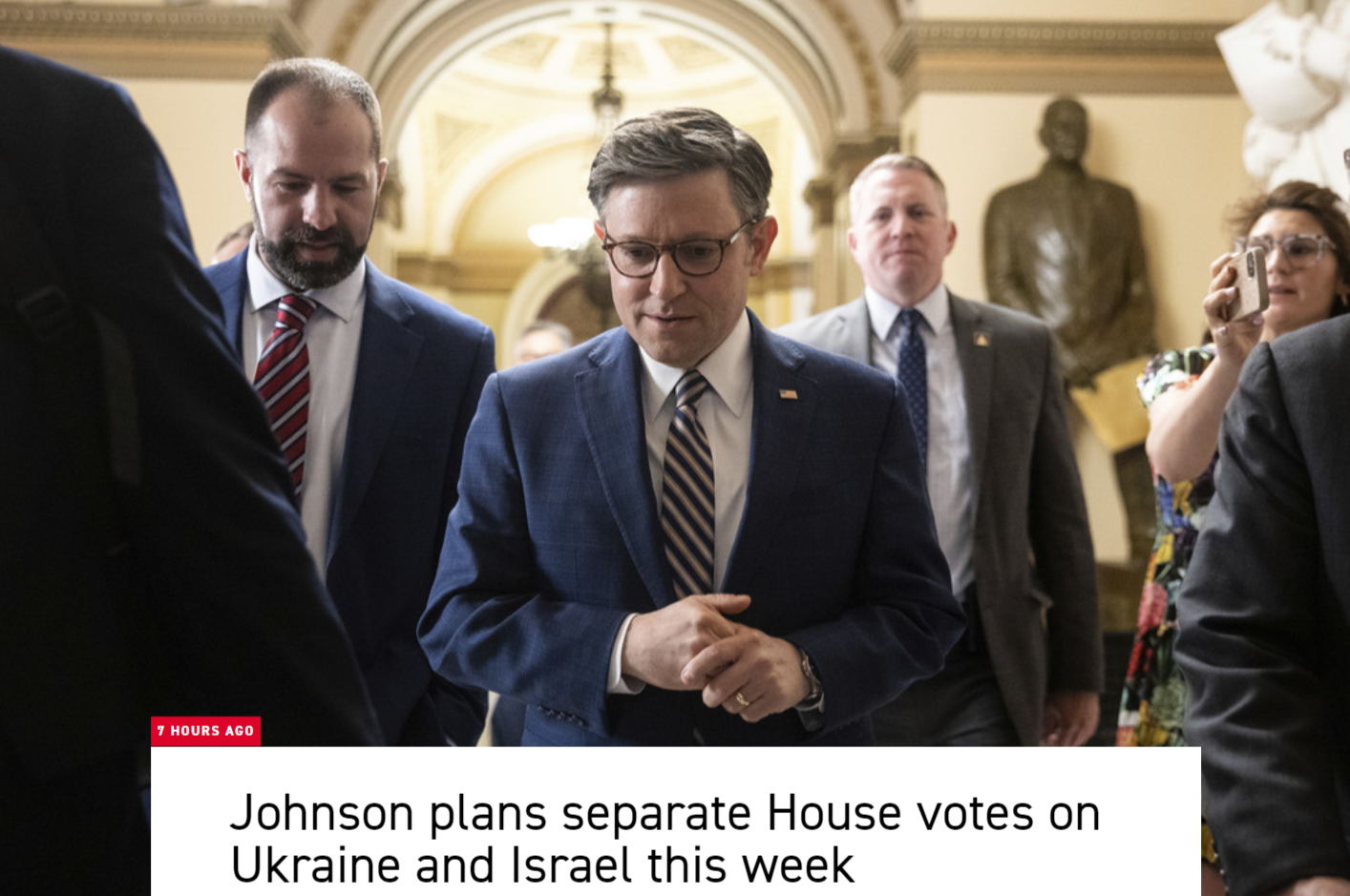 Это связано с тем, что в понедельник ряд республиканцев опубликовали заявление, в котором говорится, что они выступают против использования темы Израиля для "финансирования помощи Украине".