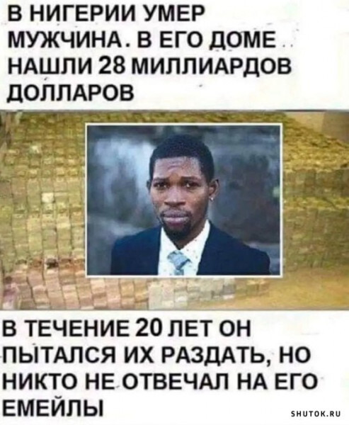 В Нигере интернета что-ли нет)? А почему нам письма на мыло приходили о погибших однофамильцах и возможностях получить наследство?)). Пусть по вацапу общаются