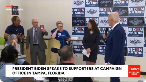 Во время выступления во Флориде в общественном колледже Хиллсборо в Тампа-Бэй Байден сделал ложное заявление о своей биографии, сказав собравшимся: “Раньше я водил 18-колесный грузовик".