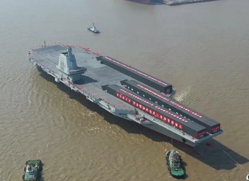 На снимках, опубликованных сегодня в социальных сетях, видно, как авианосец покидает причал на верфи Jiangnan на острове Чансин, в устье реки Янцзы к северу от Шанхая. Видно, что военный корабль движется своим ходом, сопровождаемый несколькими буксирами, на его островной надстройке вывешены сигнальные флаги.